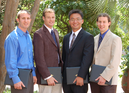 The student winners of the 2010 Demetriades - Tsafka - Kokkalis Prizes were announced at a special luncheon with the Demetriades - Tsafka – Kokkalis family. Xiquan Cui received the prize in Biotechnology for his work on biophotonics with Professor Changhuei Yang; Matt Eichenfield received the prize in Nanotechnology for his work in nanomechanics with Professor Oskar Painter; Morgan Putnam received the prize in Entrepreneurship for work on silicon solar cells with Professor Harry Atwater; and Andrew May received the prize in Environmentally Benign Renewable Energy Sources for his work on thermoelectric materials with Professor Sossina Haile and Dr. Jeff Snyder. 6.08.10