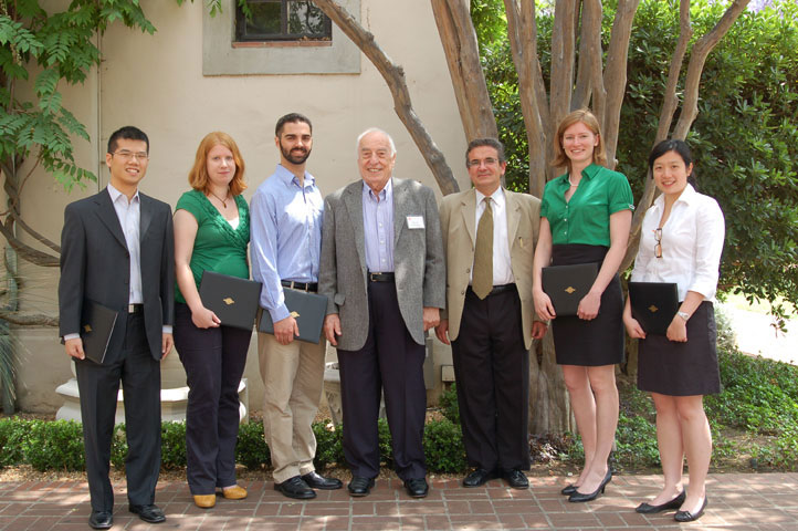 The student winners of the 2011 Demetriades - Tsafka - Kokkalis Prizes were announced at a special luncheon with the Demetriades - Tsafka – Kokkalis family. Fiona Chandra received the prize in Biotechnology for her work on glycolytic oscillations with John Doyle. Shelby Hutchens received the prize in Nanotechnology for her work on carbon nanotube foams with Julia Greer. Vivian Ferry recieved the prize in Entrepreneurship for her work on plasmonic photovoltaics with Harry Atwater. William Chueh received the prize in Environmentally Benign Renewable Energy Sources for his work on solar-driven thermochemical fuel production with Sossina Haile. Matthew Faulkner was the recipient of the newest Demetriades - Tsafka – Kokkalis prize in the area of Seismo-Engineering, Prediction, and Protection for his work with Andreas Krause on using accelerometers in cellphones for detecting shaking from earthquakes. 6.8.11